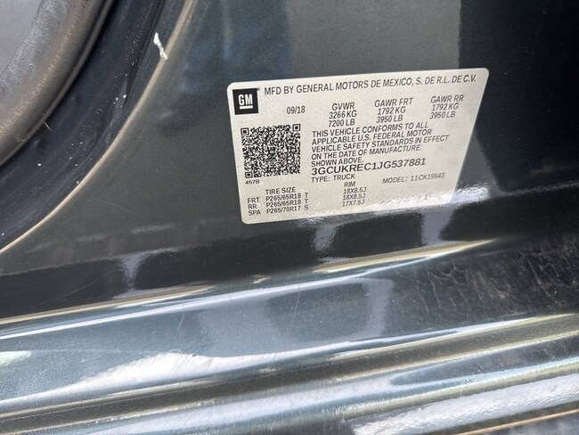 - VIN : 3GCUKREC1JG537881