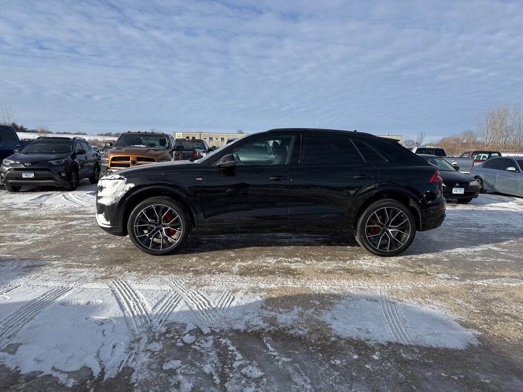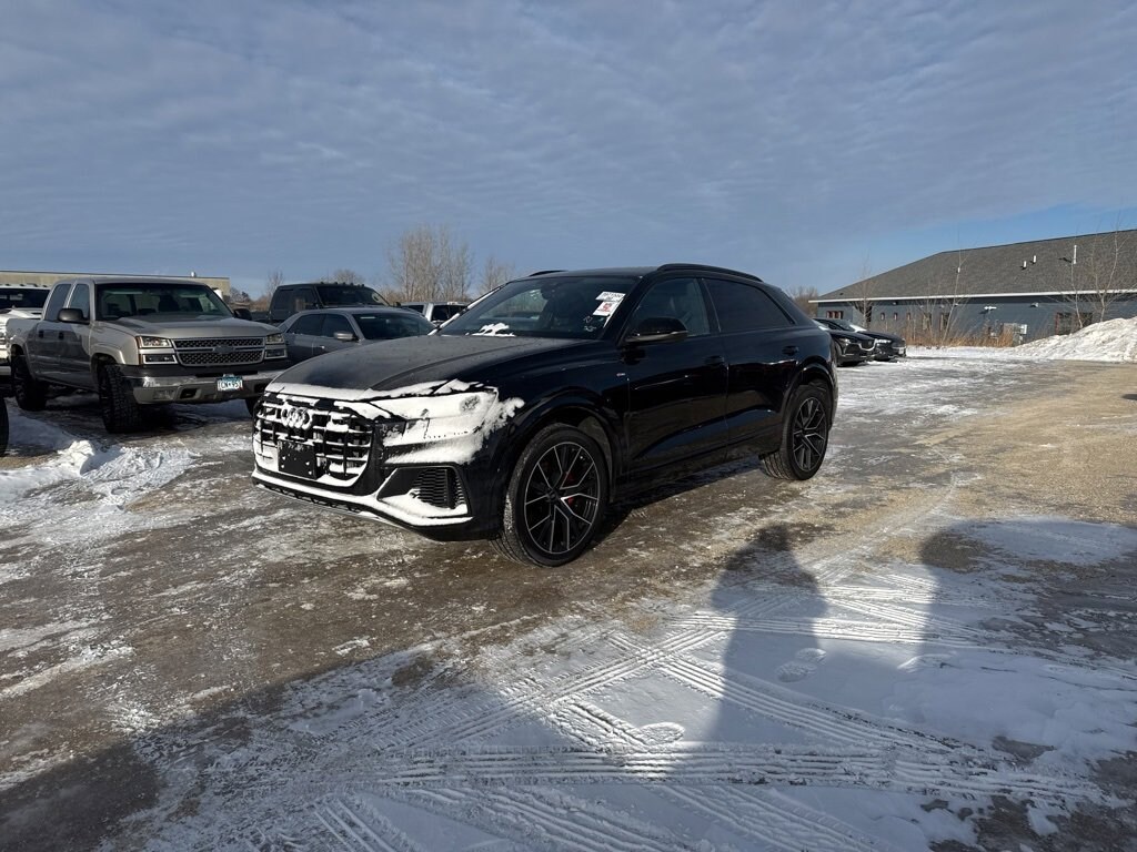 2023 Audi 4D Sport Utility Q8 55 Prestige Black Q8 55 Prestige quattro, 4D Sport Utility, 3.0L V6 Turbocharged DOHC 24V LEV3-ULEV70 335hp, 8-Speed Automatic with Tiptronic, quattro, Black, Black Leather, 4-Zone Automatic Climate Control, Audi Adaptive Cruise Assist w/Lane Guidance, Audi Phone Box w/Wireless Charging, Bang & Olufsen 3D Premium Sound System, Comfort Adaptive Air Suspension, Contour/Ambient LED Interior Lighting Package, Convenience Package, Dual-Pane Acoustic Glass for Side Windows, Executive Package, Front Seats w/Ventilation, Head-Up Display, Heated Rear Seats, Heated Steering Wheel, Illuminated Door Sills, Navigation system: Audi MMI Navigation plus with Touch Response, Power Rear Side Window Sunshades, Power Soft-Closing Doors, Prestige Package, Remote Park Assist Plus, Top View Camera System, Traffic Sign Recognition & Intersection Assist. 3.0L V6 Turbocharged DOHC 24V LEV3-ULEV70 335hp 8-Speed Automatic with Tiptronic quattro