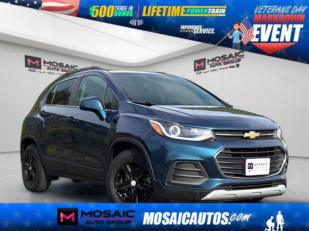 2020 Chevrolet Trax***Exterior Pacific Blue Metallic***Interior Jet Black***26/31 City/Highway MPG***Bluetooth Hands-Free Phone and Audio, ***Apple CarPlay & Google Android Auto, ***Automatic Headlights, ***Keyless Access w/Pushbutton Start, ***Rear View Camera, ***Accident-Free, ***Power Driver Seat.ASK ABOUT OUR LIFETIME POWERTRAIN WARRANTY AND OUR $500 TRADE BONUS!We are locally owned and operated. At Mosaic Chevrolet, we believe in giving you a fair and competitive price upfront. All of our vehicles feature our Markdown Pricing to ensure you feel confident about getting a good deal and excellent overall value in your vehicle purchase. We would also love to have your trade! We will give you Fair Market Trade Value for your vehicle. Want to know what your trade is worth? Use the KBB Instant Cash Offer feature on our website to receive a guaranteed value for your vehicle! We also offer convenient service hours during the week and all-day Saturday. We are very serious about your satisfaction and our aim is to make your experience with us Simple, Fast & Fun. There are additional incentives available that you may qualify for including: Military Consumer Cash, Conquest Lease-to-Retail/Lease, Returning Lessee and more. Please call or stop by and visit us for more information. We brand our dealership as a Markdown Store which incorporates the following elements-Time Saving, Hassle Free & a Fair Price.