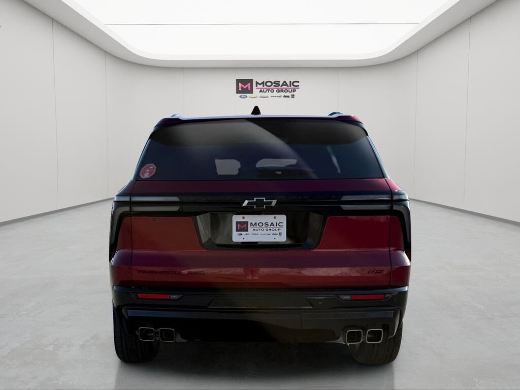Mosaic Auto Group: One Name. One Location. One Goal. Bring trust in car buying and passion into service.This 2025 Chevrolet Traverse RS is a standout in its class, boasting an impressive array of premium features that elevate your driving experience. Prepare to be captivated by its sleek exterior, powerful performance, and unparalleled comfort.- Navigation/Nav/GPS- Bluetooth Hands-Free Phone and Audio- Apple CarPlay & Google Android Auto- Dual-Climate Control- Automatic Headlights- Keyless Access w/Pushbutton Start- Remote Start System- Rear View Camera- Heated Steering Wheel- Heated/Cooled Front Seats- Heated Second-Row Seats- Power Liftgate- Accident-Free- Forward Collision Alert- Lane Keep Assist w/ Lane Departure Warning- Following Distance Indicator- Power Driver SeatPowered by a 2.5L DOHC engine and an 8-Speed Automatic transmission, this Traverse RS delivers a dynamic and responsive driving experience, with the added confidence of All-Wheel Drive. Boasting an impressive 19 MPG in the city and 24 MPG on the highway, this SUV strikes the perfect balance between power and efficiency.Step inside and be enveloped in the luxurious Perforated Leather-Appointed Seat Trim, where the Heated and Ventilated Front Seats, along with the Heated Rear Seats, ensure your utmost comfort no matter the weather. The Bose Premium 12-Speaker Audio System and the 17.7 Diagonal Display with the latest infotainment technology will keep you entertained and connected on every journey.Safety is paramount in the 2025 Traverse RS, with features like Forward Collision Alert, Lane Keep Assist with Lane Departure Warning, and the Rear View Camera providing you and your loved ones with the confidence you deserve. The Accident-Free history of this vehicle further reinforces its reliability and peace of mind.Discover the perfect blend of style, performance, and technology in this exceptional 2025 Chevrolet Traverse RS. Schedule a test drive today and experience the difference for yourself.Drive a little, SAVE a lot with Mosaic Chevrolet Zumbrota. Your hometown team standing behind every mile. Backed by our FREE Lifetime Powertrain Warranty, ask your sales consultant today. Plus, enjoy a $500 Trade-In Bonus when you trade your current vehicle (see dealer for details).