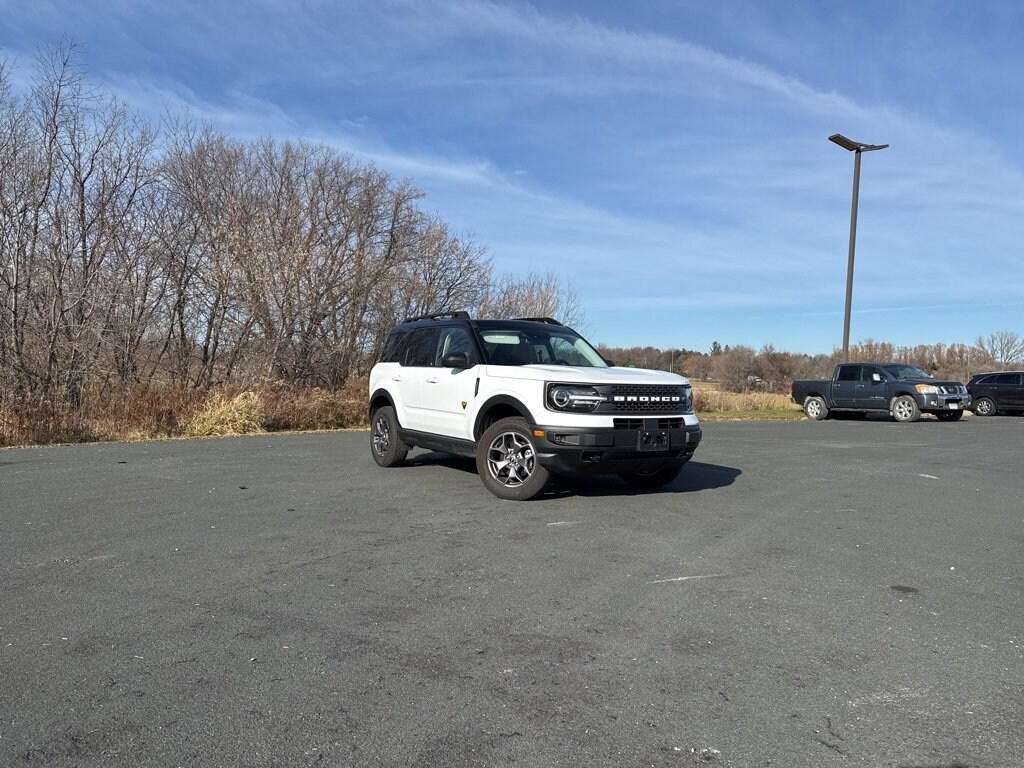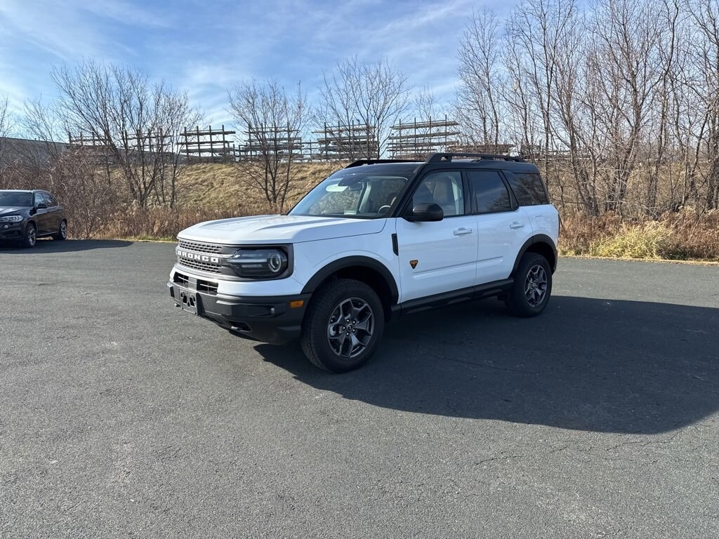 2024 Ford 4D Sport Utility Bronco Sport Badlands Oxford White Bronco Sport Badlands 4X4, 4D Sport Utility, EcoBoost 2.0L I4 GTDi DOHC Turbocharged VCT, 8-Speed Automatic, 4WD, Oxford White, Ebony/Roast, Auto-Dimming Rear-View Mirror, Body-Colored Door Handles, Dual-Zone Electronic Automatic Temperature Control, Equipment Group 400A, Evasive Steering Assist, Ford Co-Pilot360 Assist+, HD Radio, Heated Steering Wheel, Intelligent Adaptive Cruise Control w/Stop & Go, Leather-Trimmed 2-Tone Heated Front Bucket Seats, Memory Driver's Seat & Sideview Mirror, Premium Package, Rear Parking Sensors, Remote Start System, Universal Garage Door Opener (UGDO), Voice-Activated Touchscreen Navigation System, Wireless Charging Pad. EcoBoost 2.0L I4 GTDi DOHC Turbocharged VCT 8-Speed Automatic 4WD
