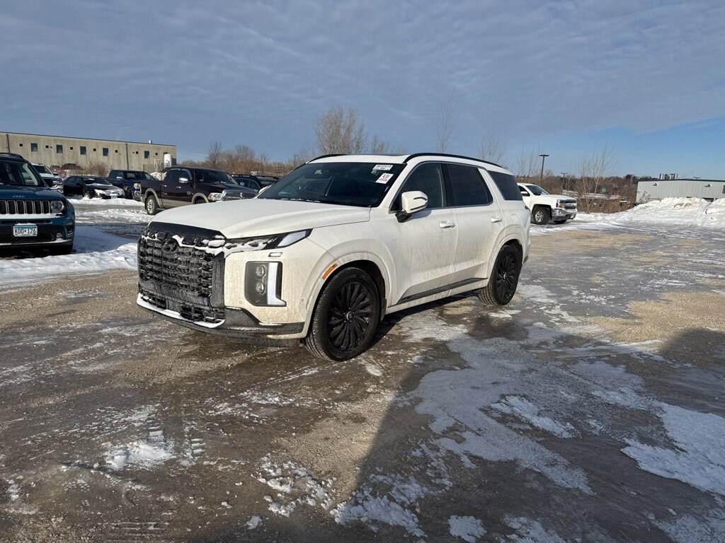 2025 Hyundai 4D Sport Utility Palisade Calligraphy Night Edition Hyper White Palisade Calligraphy Night Edition AWD, 4D Sport Utility, V6, 8-Speed Automatic with SHIFTRONIC, AWD, Hyper White, Black Leather, 12 Speakers, harman/kardon® Speakers, Heads-Up Display, Navigation System, Option Group 01, Power moonroof. V6 8-Speed Automatic with SHIFTRONIC AWD