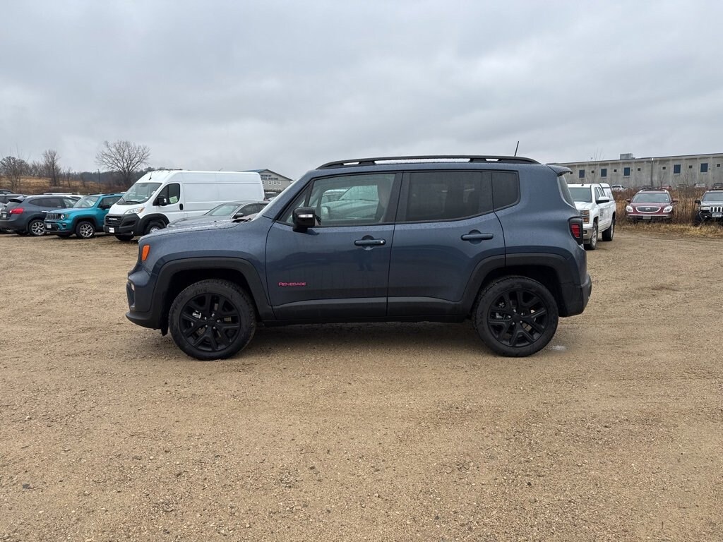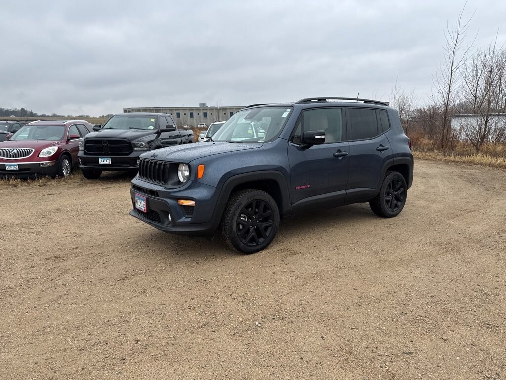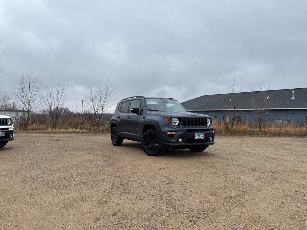 2023 Jeep 4D Sport Utility Renegade Altitude Slate Blue Pearlcoat Renegade Altitude, 4D Sport Utility, 1.3L I4, 9-Speed 948TE Automatic, 4WD, Slate Blue Pearlcoat, Black Cloth, Ambient LED Interior Lighting, Automatic Headlamps, Black Side Roof Rails, Cluster 7" TFT Color Display, Cornering Front Fog Lamps, Deluxe Cloth High-Back Bucket Seats, Exterior Mirrors w/Supplemental Signals, Gloss Black Exterior Accents, Gloss Black Grille-Gloss Black Xhairs, Keyless Entry w/Panic Alarm, Navigation System, Premium-Wrapped Steering Wheel, Quick Order Package 22M Altitude, Radio: Uconnect 4C Nav w/8.4" Display, Remote Start System, Upgraded Exterior Color Mirror, Wheels: 18" x 8.0" Gloss Black. 1.3L I4 9-Speed 948TE Automatic 4WD