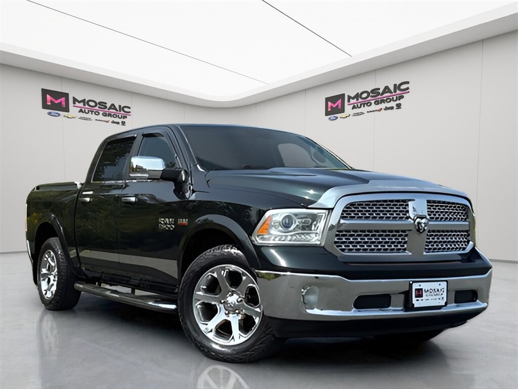 2017 Ram 4D Crew Cab 1500 Laramie Black Forest Green Pearlcoat 1500 Laramie 4X4, 4D Crew Cab, HEMI 5.7L V8 Multi Displacement VVT, 8-Speed Automatic, 4WD, Black Forest Green Pearlcoat, Black Leather, 10 Speakers, Auto High Beam Headlamp Control, Convenience Group, Keyless Enter-N-Go, Power Sunroof, Quick Order Package 26H Laramie, Rain Sensitive Windshield Wipers, Remote Proximity Keyless Entry. HEMI 5.7L V8 Multi Displacement VVT 8-Speed Automatic 4WD