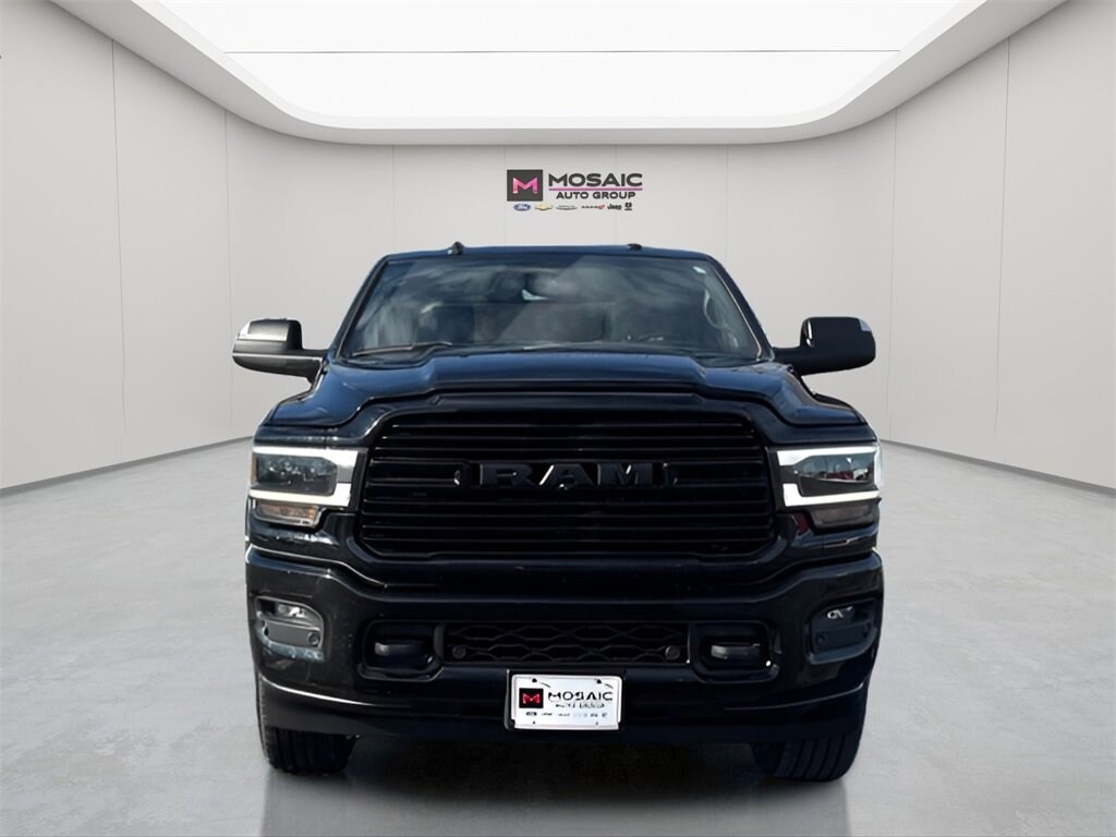 2020 Ram 4D Crew Cab 3500 Laramie Diamond Black Crystal Pearlcoat 3500 Laramie 6.7L 4X4, 4D Crew Cab, 6.7L I6, Aisin 6-Speed Automatic, 4WD, Diamond Black Crystal Pearlcoat, Black Leather, 1-Year SiriusXM Guardian Trial, 17 Speaker harman kardon Premium Sound, 2nd Row In Floor Storage Bins, 5-Year SiriusXM Traffic Service, 5-Year SiriusXM Travel Link Service, 8.4" Touchscreen Display, Adaptive Cruise Control w/Stop, Adaptive Steering System, Apple CarPlay, Auto High Beam Headlamp Control, Black Exterior Mirrors, Black Exterior Truck Badging, Black Headlamp Bezels, Black Interior Accents, Black Ram Head Tailgate Badge, Black Tail Lamp Bezels, Black Wheel Center Hub, Blind Spot & Cross Path Detection, Body Color Door Handles, Body Color Grille Surround, Cold Weather Group, CTR Stop Lamp w/Cargo View Camera, Disassociated Touchscreen Display, Engine Block Heater, Exterior Mirrors w/Memory, Foam Bottle Insert (Door Trim Panel), For Details Visit DriveUconnect.com, Full Speed Forward Collision Warning Plus, Gloss Black Grille Billets/Accents, Google Android Auto, GPS Antenna Input, GPS Navigation, HD Radio, Heated Second Row Seats, Integrated Center Stack Radio, Integrated Voice Command w/Bluetooth, Lane Keep Assist, Laramie Level 2 Equipment Group, Media Hub w/2 Charge Only USBs, Mirror-Mounted Aux Reverse Lamps, Night Edition, Painted Front Bumper, Painted Rear Bumper, Power Adjustable Convex Aux Mirrors, Power Adjustable Pedals w/Memory, Power Black Tow Mirrors w/Convex Spotter & Memory, Power Chrome Tow Mirrors w/Convex Spotter & Memory, Quick Order Package 21H Laramie, Radio: Uconnect 4C Nav w/8.4" Display, Radio/Driver Seat/Mirrors/Pedals Memory, Rain Sensitive Windshield Wipers, Remote Tailgate Release, Safety Group, SiriusXM Satellite Radio, SiriusXM Traffic Plus, SiriusXM Travel Link, Surround View Camera System, Towing Technology Group, Trailer Reverse Guidance, USB Host Flip, Ventilated Front Seats, Wheels: 20" x 8.0" Black Painted Aluminum, Winter Front Grille Cover. 6.7L I6 Aisin 6-Speed Automatic 4WD
