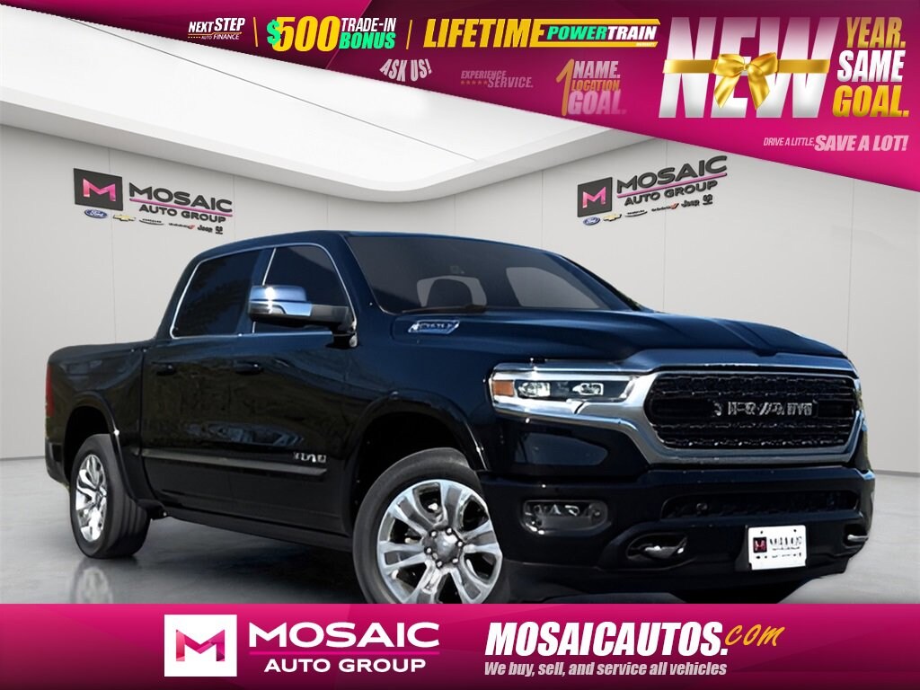 2023 Ram 4D Crew Cab 1500 Limited Diamond Black Crystal Pearlcoat ******Factory Certified Pre-Owned**********, 1500 Limited 4X4, 4D Crew Cab, HEMI 5.7L V8 Multi Displacement VVT eTorque, 8-Speed Automatic, 4WD, Diamond Black Crystal Pearlcoat, Black Leather, Body Color Bumper Group, Body Color Front Bumper, Body Color Rear Bumper w/Step Pads, Navigation System, Quick Order Package 27M Limited, Trailer Brake Control, Trailer Light Check, Trailer Reverse Steering Control, Trailer Tire Pressure Monitoring System, Trailer Tow Group. HEMI 5.7L V8 Multi Displacement VVT eTorque 8-Speed Automatic 4WD
